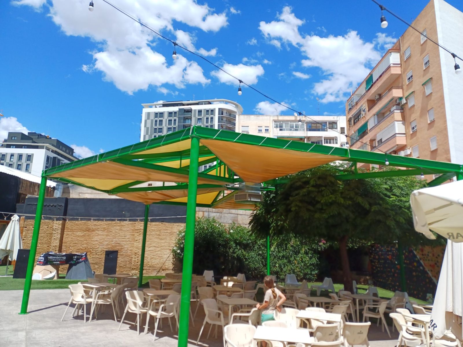 Una biopèrgola per reduir fins a 16 °C la temperatura del pati escolar