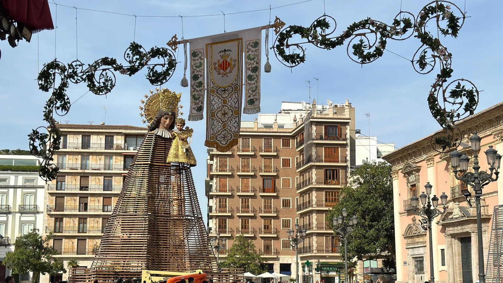 L’Ajuntament de València ha iniciat la instal·lació d’una nova decoració ornamental en l’entorn monumental pel qual transcorre l’Ofrena a la Mare de Déu dels Desemparats, un dels actes centrals de les Falles. La iniciativa coincideix amb el desé aniversari de la declaració de les Falles com a Patrimoni de la Humanitat per la UNESCO.